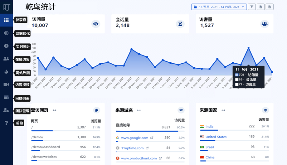 “ 强大的网站数据统计,提供用户行为分析,用户画像分析,用户行为录屏,实时数据分析,简洁化适配自动邮件网站数据分析告. . ”